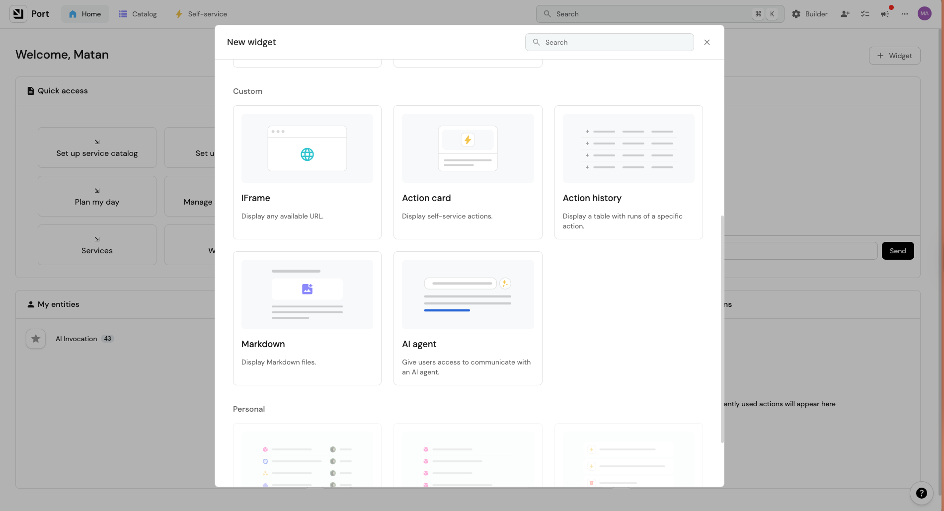 You can add AI agents directly to your dashboards as interactive widgets, providing easy access to their capabilities right where you need them.