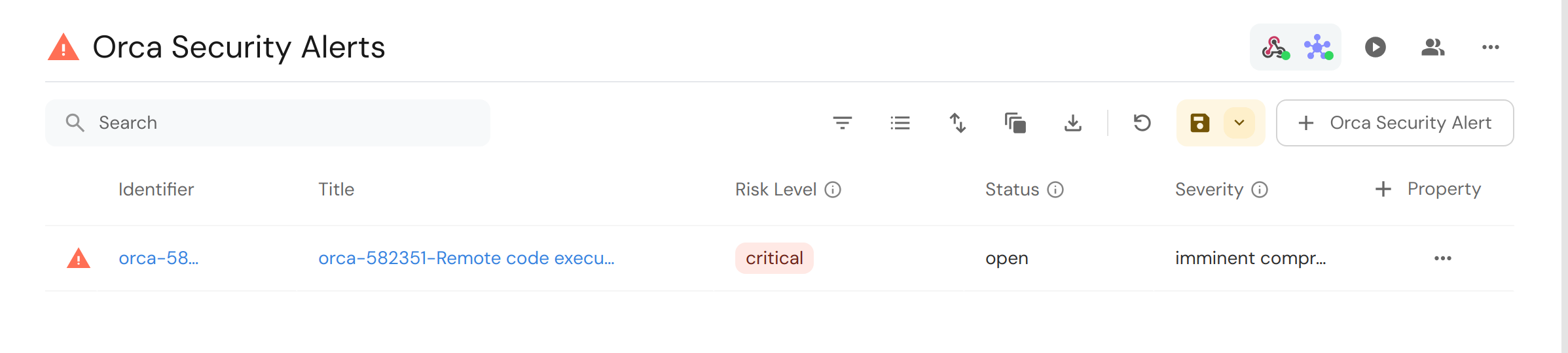For either ingestion types, you will create the orcaSecurityAlert blueprint: