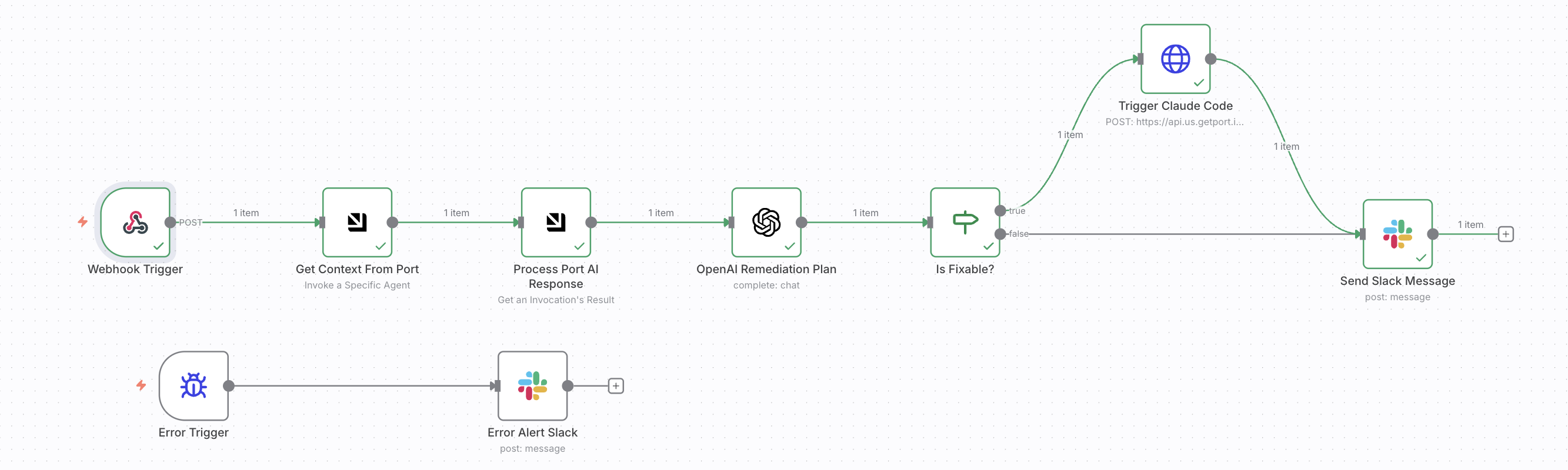 - Trigger Claude Code — (Optional) Triggers automated code fix via Port action