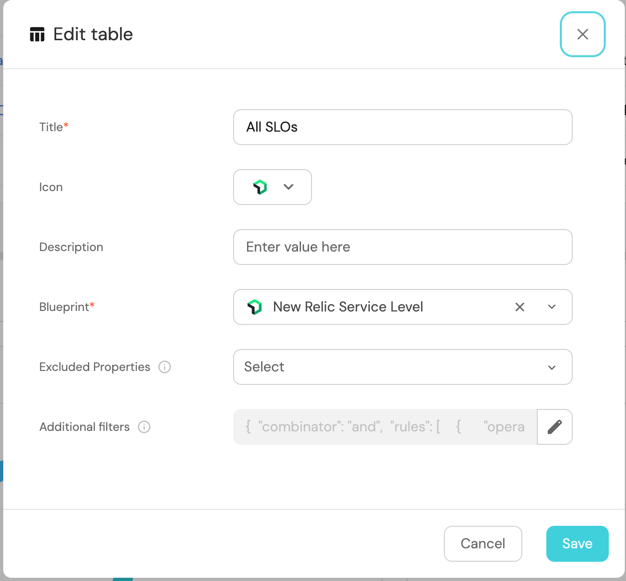 1. Navigate to the New Relic Service Level blueprint in your Port Builder.