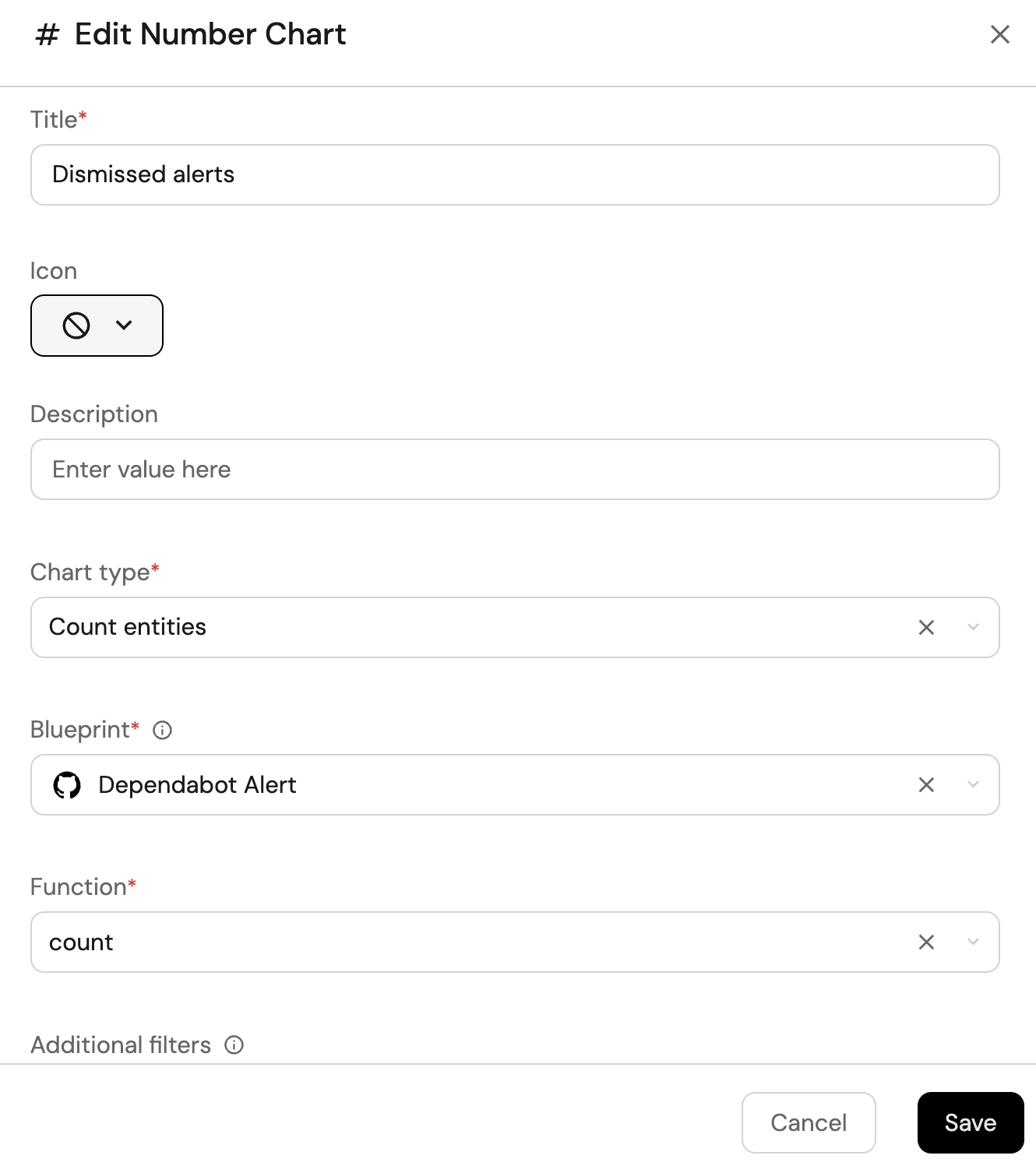 3. Select Count entities Chart type and choose Dependabot Alert as the Blueprint.